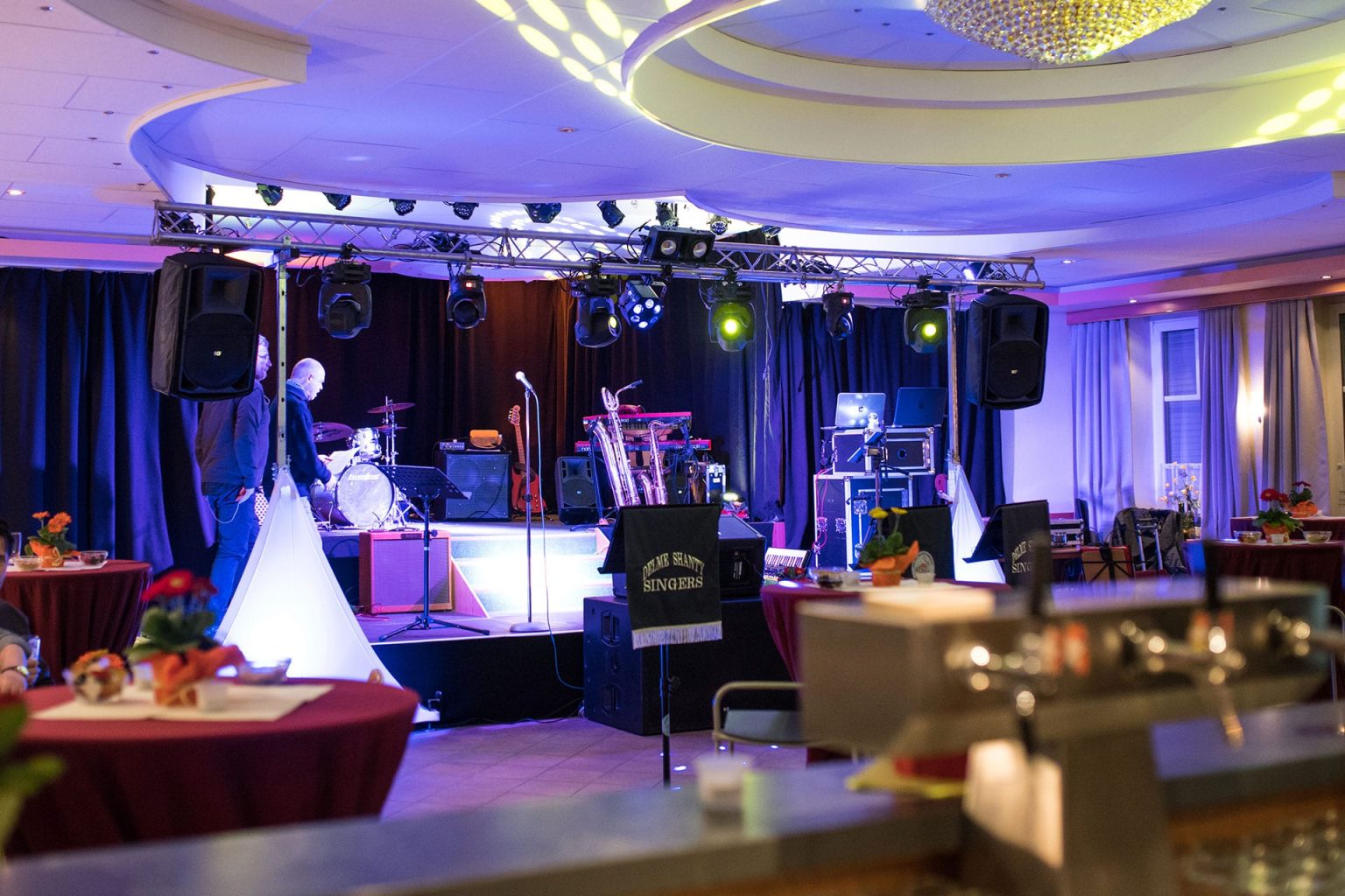 Technik & Ausstattung – Professionelle Licht- und Tontechnik, Bühne, Thekenanlage.